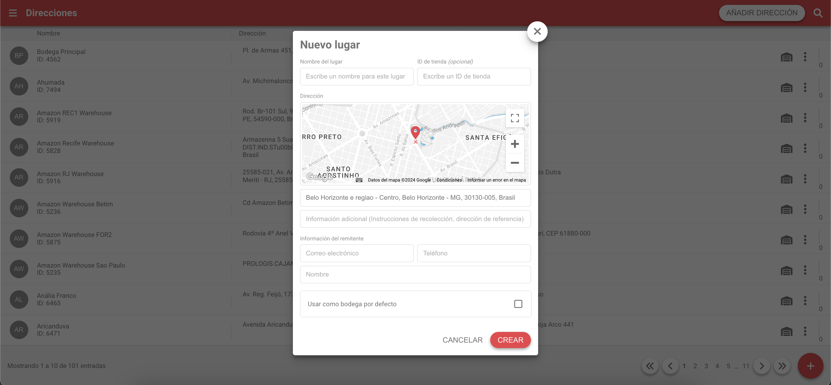 The deliveries created in the system will always have a warehouse as the collection point, which you must create by accessing this [link](https://dash.shippify.co/places) and creating a new one.