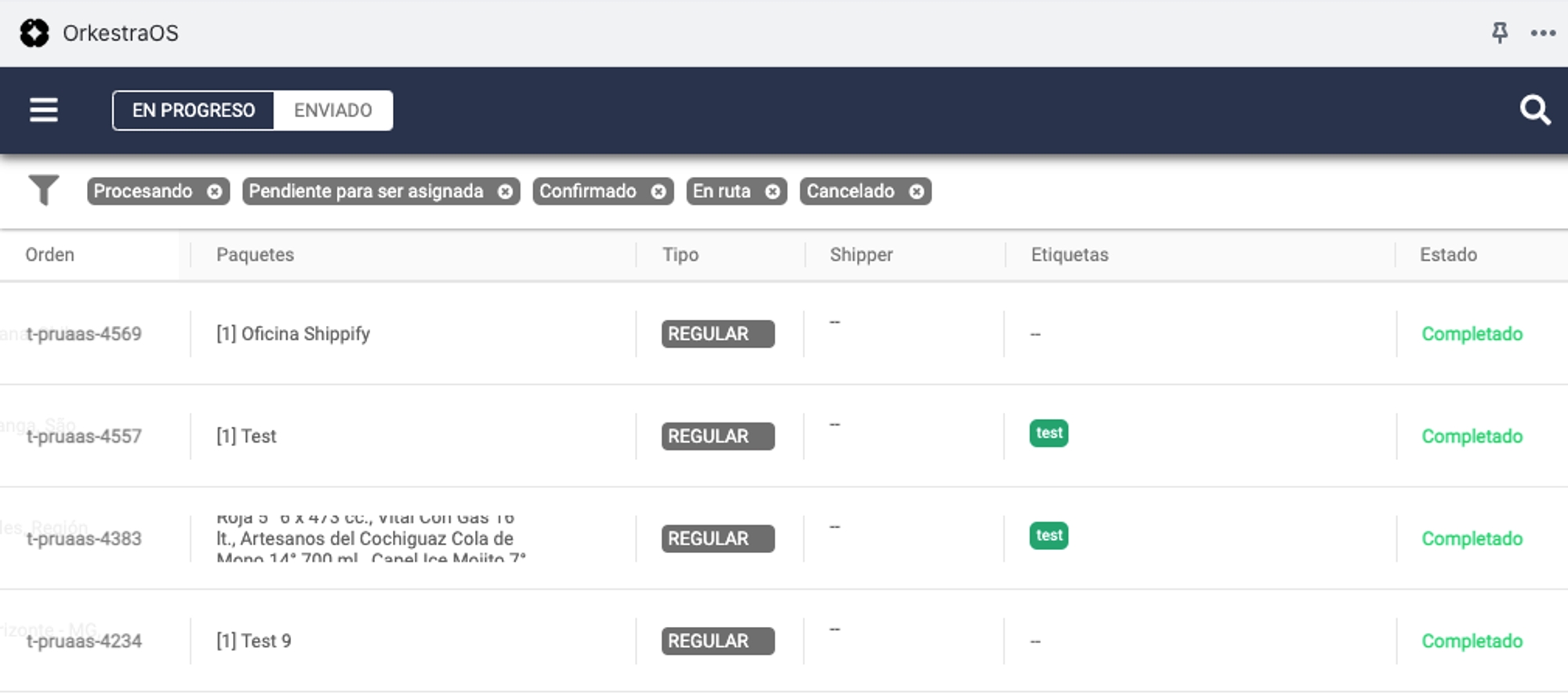 Se você deixou a opção de checkout ativada nas configurações, então poderá filtrar as entregas correspondentes à Shippify na coluna "tag". Por outro lado, se ativou as opções de envio no checkout, também poderá filtrar pelos tags correspondentes a cada opção. Isso permitirá filtrar todas as entregas que precisam ser enviadas conosco e criar-las em massa.