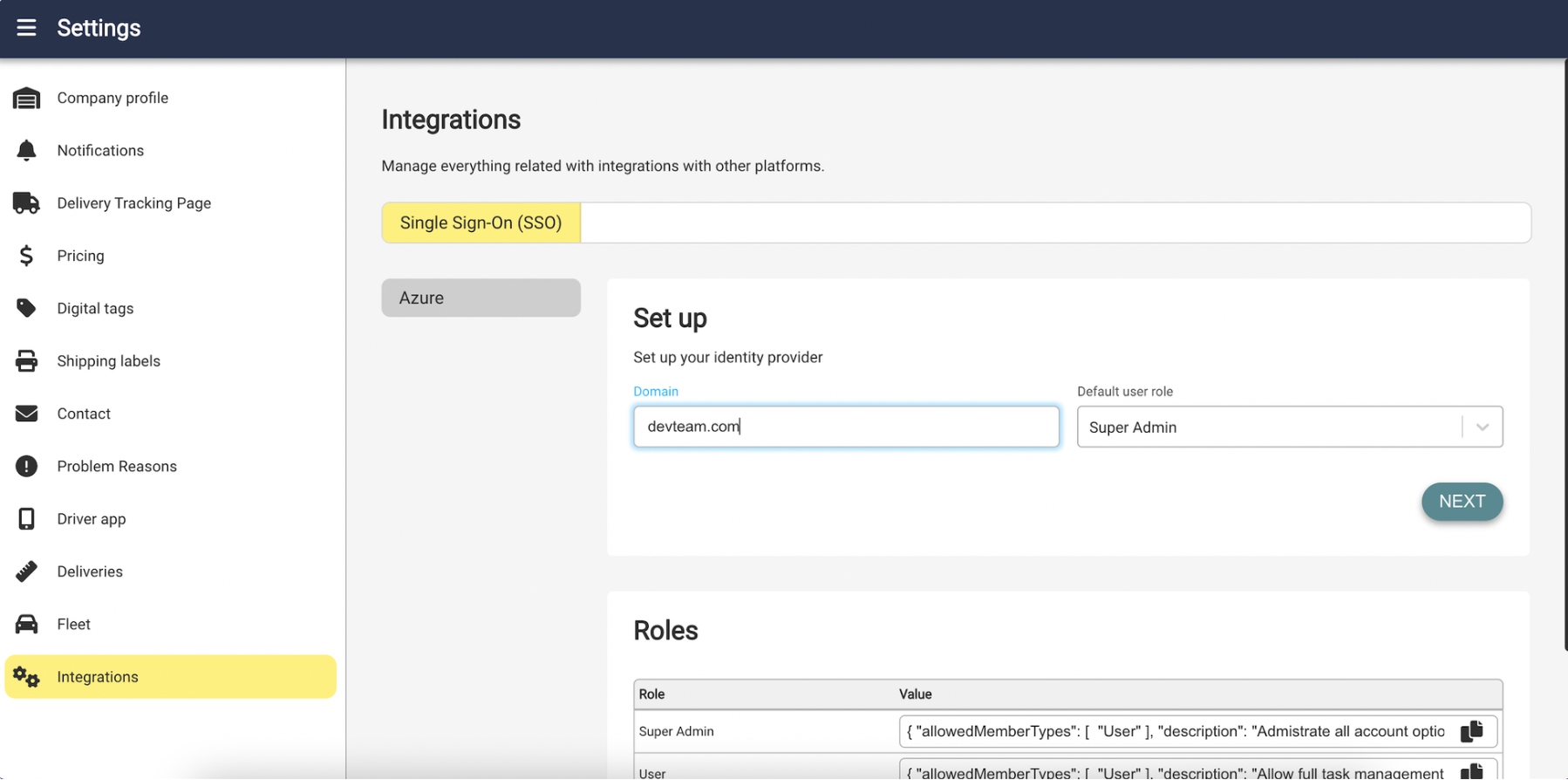 Através do SAML SSO, você pode atribuir funções de usuário que concedem determinadas permissões na conta do Shippify e que também se aplicam a todas as APIs do Shippify. As funções de usuário são atribuídas no provedor de identidade e são transferidas para o Shippify na asserção SAML. As funções de usuário disponíveis são: