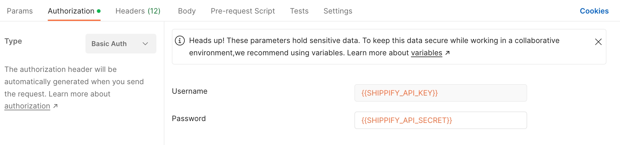 Você receberá um ID de APP e um APP SECRET do painel para construir seu token com autenticação básica. Em ferramentas como o Postman, você pode inserir diretamente suas credenciais e não é necessário construir o token manualmente.
